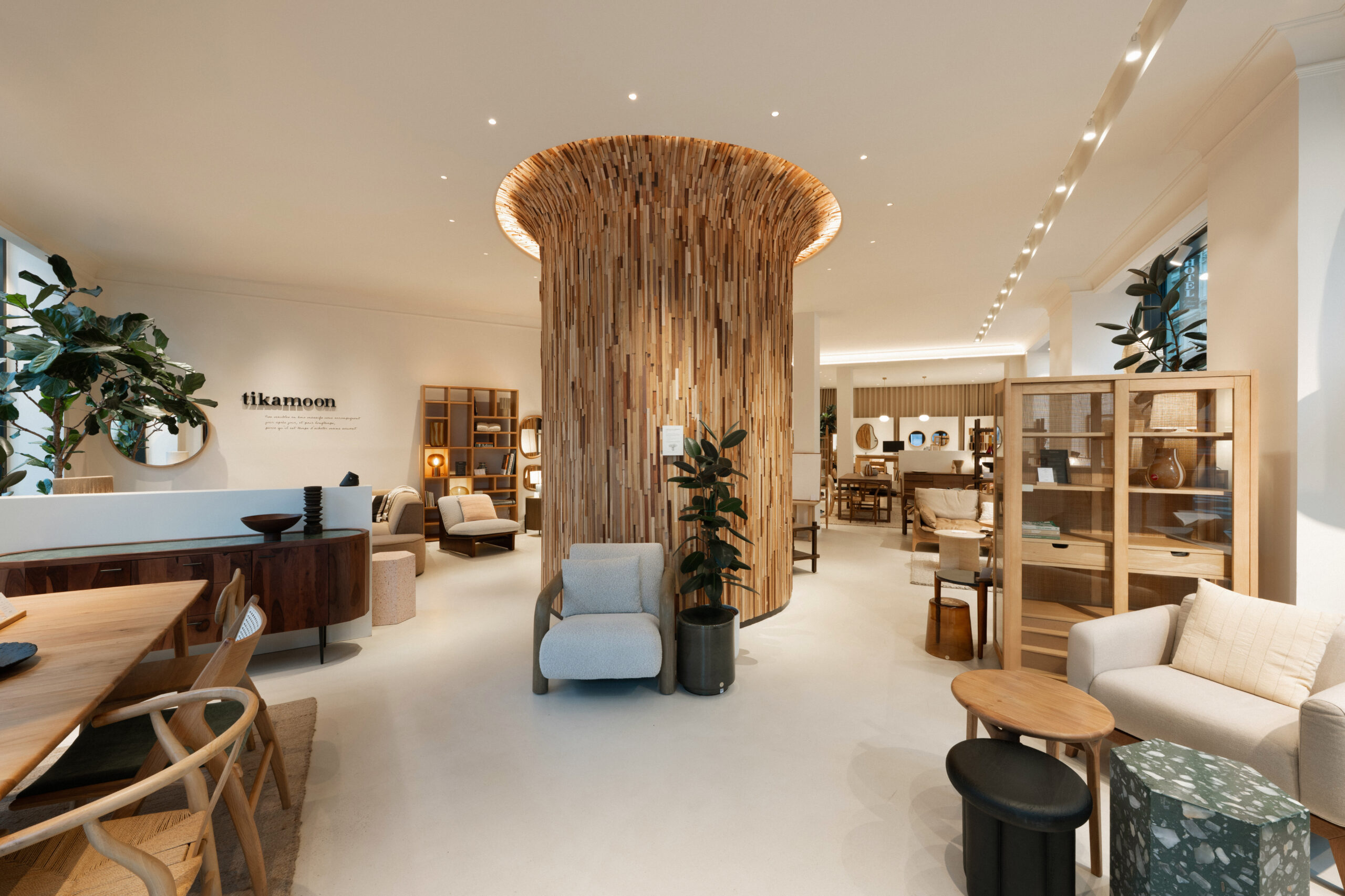 Le résultat : une expérience immersive et singulière, loin des codes traditionnels des magasins de meubles. Un espace enveloppant, calme et inspirant, qui reflète pleinement l’ADN de Tikamoon.